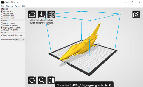 3Dデータを印刷用のGコードに変換するソフトも全部オートマチックで、サポートの種類を選択するくらいしかできません。1回だけ自動サポート生成がミスって、空中にモデリングし始めたことがありましたが、事前に「どんなサポート材がつくか」はソフト上で確認することはできますので、十分チェックしてから始めることです。