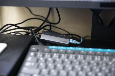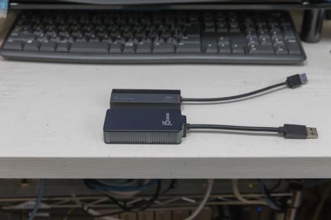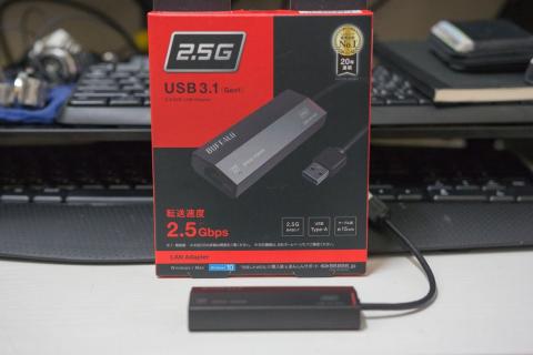 そこで以前からノートPCで使おうと思っていた(現状は3階にもWifiルーターをブリッジ接続していますので、通常は何ら支障なしで、わざわざ有線は?と思っていたので、保管していた)USB3.1gen1接続のLANアダプター(2.5GBe)を、取り付けました。
