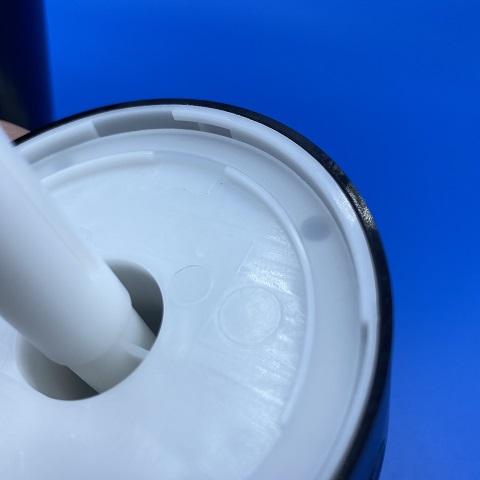 容器との密着部分には柔らかいゴム製のパッキンがあり液漏れ防止策がとられていました。