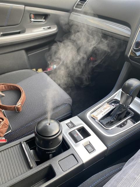 小さい分、ちょっと加湿量は少ないけれど、車内では多いくらいです。車内は間欠運転がよさそうですね。