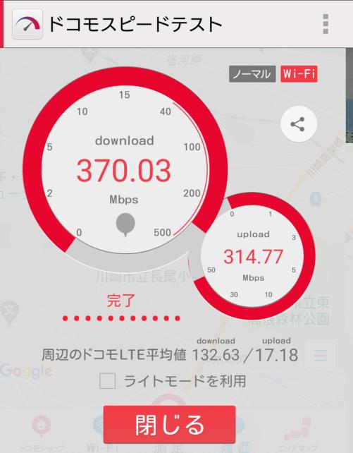 最後に、docomoのXperia XZ Premium(11ac)というスマホでスピードテストを行ってみましたが、上り/下り共に300-400Mbps程度の速度が確認できました。