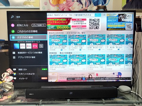 43インチの43J10Xを使用している和室に移動しました。こちらだと丁度いい