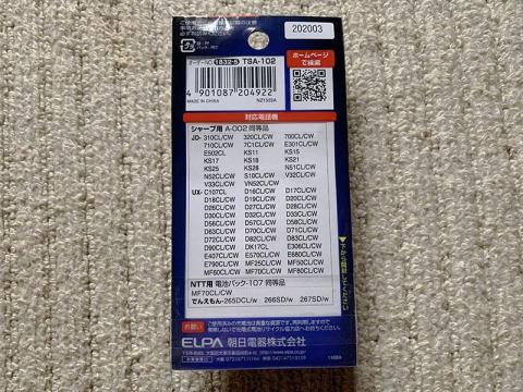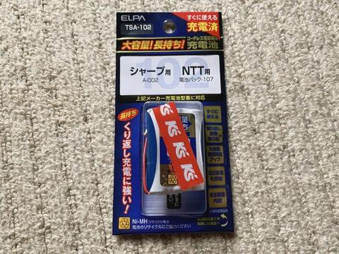 どうせ互換品を使うのであれば、バッテリー容量が増えているものの方が望ましいと思い、店頭在庫がある中では最も容量が大きかった、ELPA(朝日電器)製TSA-102を購入してきた訳です。