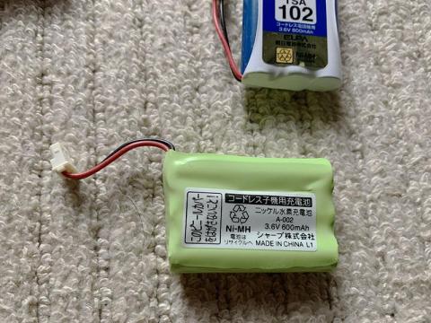 故障したJD-KS11は一度バッテリーを入れ替えていましたので、UX-MF25CL添付の子機のバッテリーが劣化した際に、このバッテリーと入れ替えて使っていました。しかし、今度は新たに追加したJD-KS17のバッテリーも劣化してきて、充電器から取り外して5分も通話するとバッテリーインジゲーターが空状態の表示となるほどでした。そこで家電量販店で交換用バッテリーを探したのですが、昔は割合純正品を容易に入手できていたものの、既に古くなった製品用の消耗品だからでしょうか。互換品しか見つからないのです。