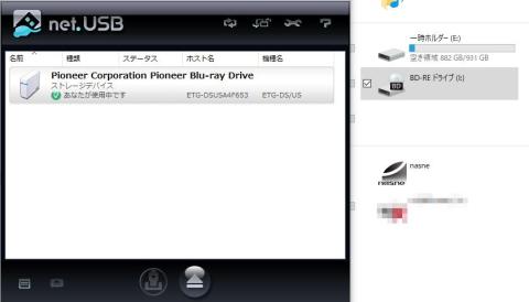 そこでBDR-XD07Jを購入当初は必要な場合にはパソコンにUSB接続して使用してきましたが、最近は、USB機器がネットワーク共有可能なデバイスにつけています。