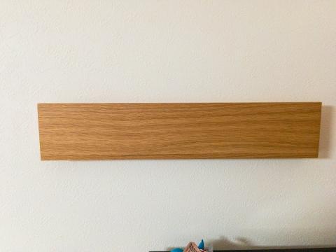 留め具はそんなに力をかけなくても壁に設置できました。これを2か所設置して、長板にかけます。その後貼り付けた説明書を引き抜けば設置完了です。