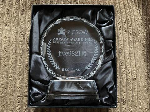 2020年の年間レビューアワードにおいて、ベストレビュアーとして選出いただいたことを記念する盾です。