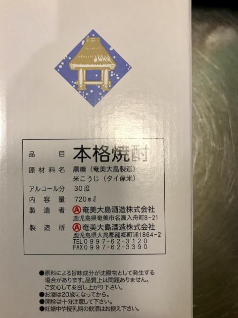 黒糖とタイ米の米麹が原料 度数は30度