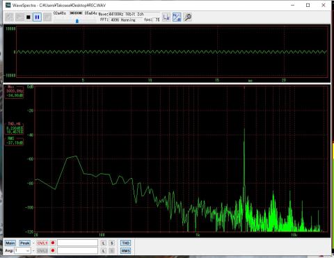 アンプキット組み立て状態の1KHz波形 コンデンサー交換前デフォルト...