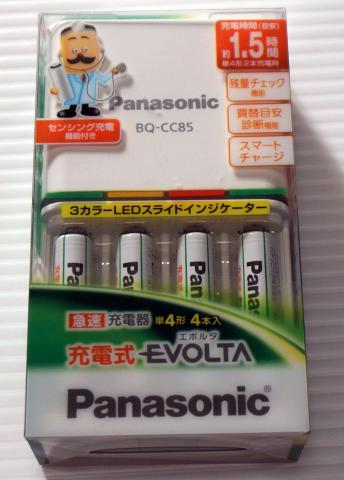 で、結局一番いいの買っとけとなったのがコレ。BQ-CC85と単四エボルタのセット。BQ-CC85単体でもよかったのだが当時の通販で値段に大差なかったので。