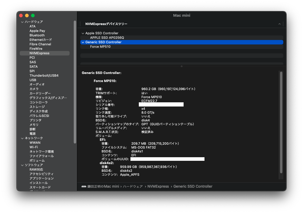 SSD=CORSAIR M.2 SSD Force MP510 960GB