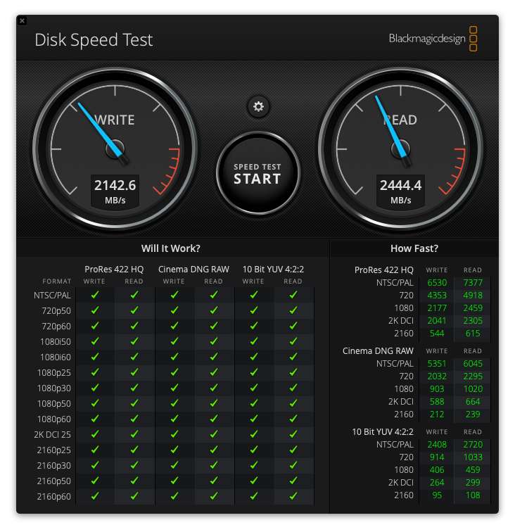 ProRes RAW 10bit 60FPS編集には増設SSDの速度が限界値です。NASを有効利用するためにはまずLANアダプターは最低5GBE対応にしたいと思います。