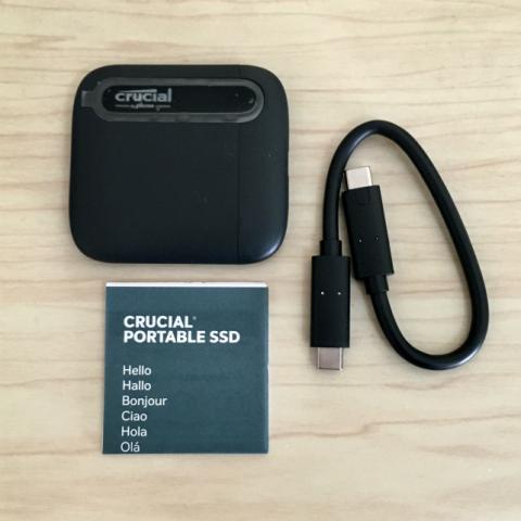 - 商品内容 : Crucial X6ポータブルSSD 本体/USB 3.2 Gen-2 Type-CからType-CへのUSBケーブル(10Gb/秒)/クイックスタートガイド