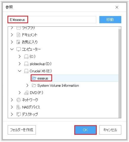 ここでは、ドライブレターは「E」、フォーマット形式はexFAT。