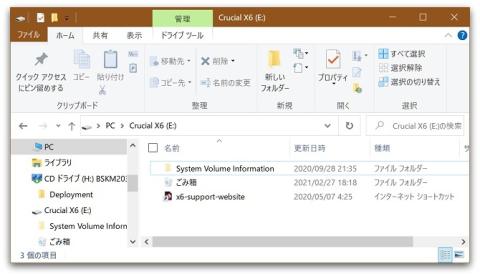 至ってシンプルなもので、「System Volume Information」 と「ゴミ箱(中は空)」、「x6x Webサイトへのリンク」だけしか無い。
