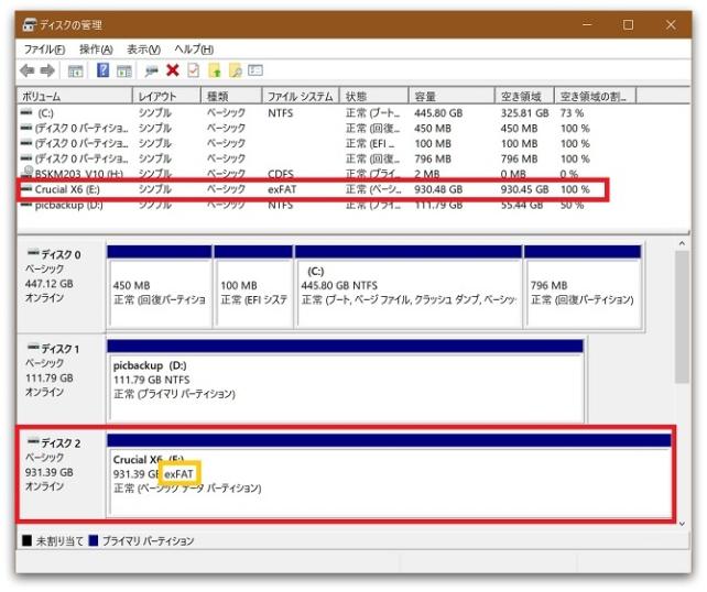 「ディスクの管理画面」を見るともう少し詳しいことが判る。