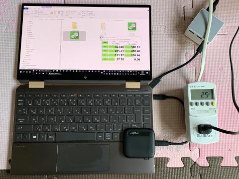 ②「Crucial X6 Portable SSD」でCrystalDiskMarkの記録中の消費電力が25w