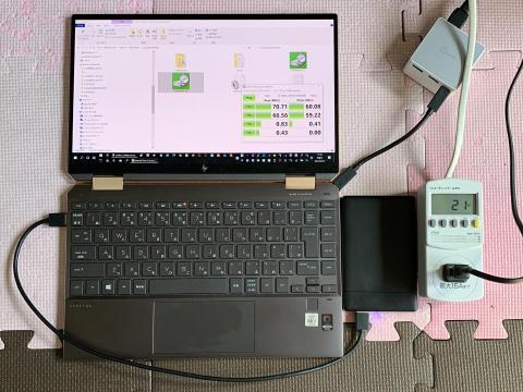 ②「Crucial X6 Portable SSD」でCrystalDiskMarkの記録中の消費電力