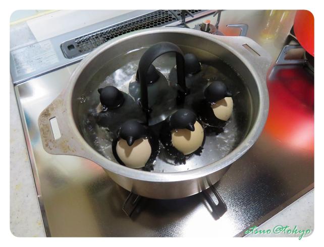ちなみにうちでは黄身を少し半熟にするのが好みで、沸騰してから卵を入れ 6分半~7分茹でます。
