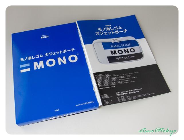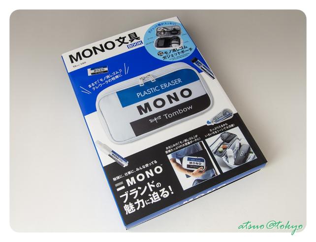 宝島社の「人気文具付録」シリーズの第4弾のモノ消しゴム柄のガジェットポーチが付いた『MONO文具BOOK』です。
