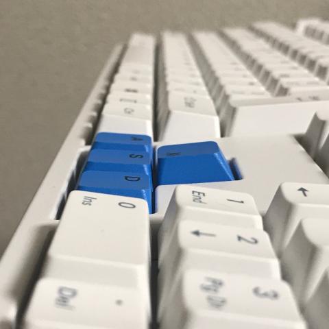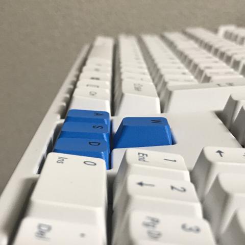 カーソルキーのみでフラットにする交換セットてのを見かけないので、角度が変われば少しは使いやすいかなとW,A,S,D キーの4つがセットになったのを買ってみました。