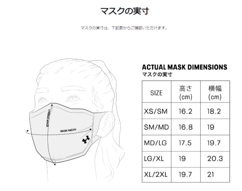 アンダーアーマー公式サイトには、サイズチャートとともに