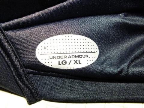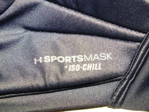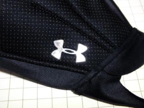 シルバーに輝くUNDER ARMOURのロゴが貼り付けられています。