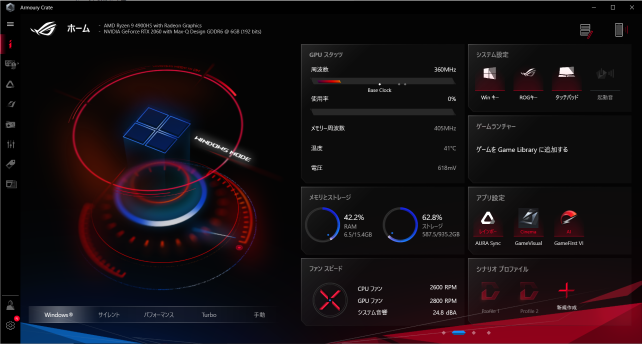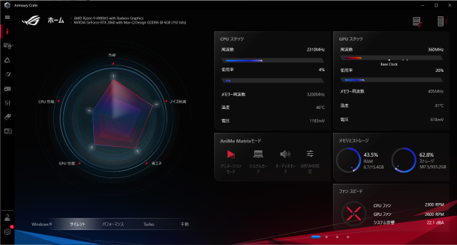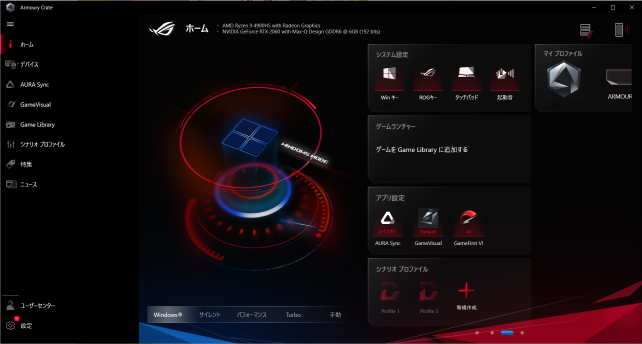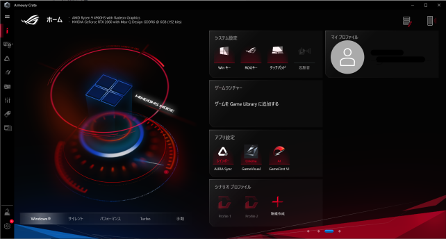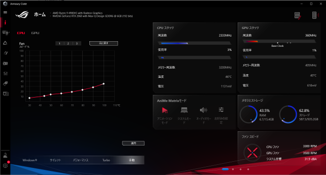 CPU:Ryzen 9 4900HS GPU:AMD Radeon(内蔵)+RTX2060 MAX-Q