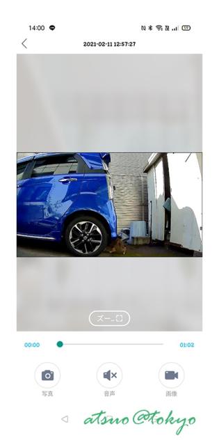 カメラからの音声を聞くには[音声]をタップする事でアイコンの「×」が消え、聞こえる様になります。
