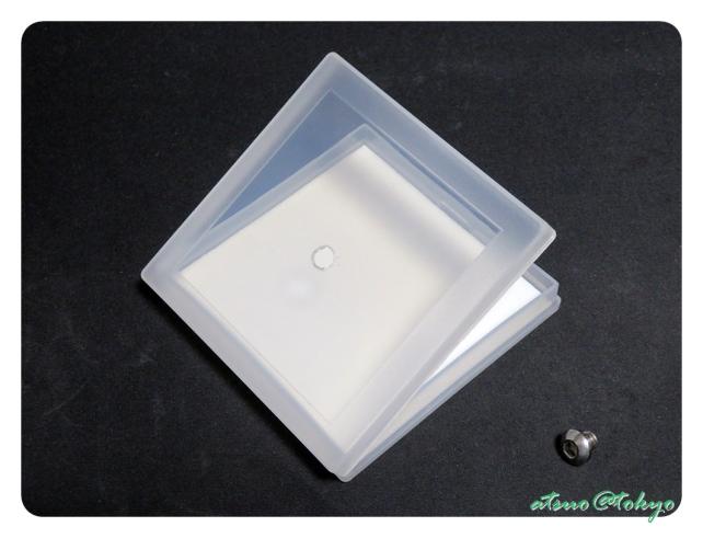 そして簡易設置台は、カメラのレンズフィルターのケース蓋に穴を空け