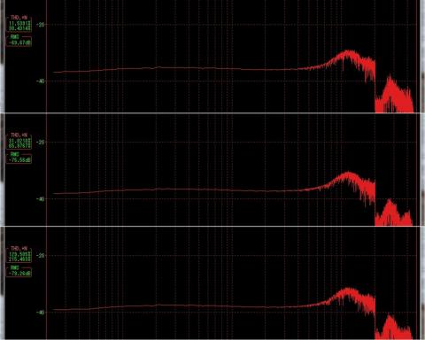 AT-33ML 上から100Ω、47Ω、32Ωでの再生グラフ JVC TRS-1007 100Ωが一番電圧は高いという当然の結果になりました MCカートリッジはインピーダンスの変化は少ないようです