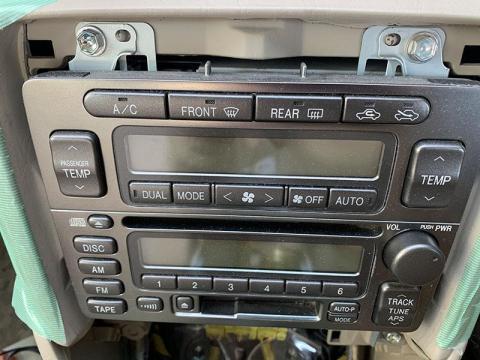 プログレのオーディオは、フロントパネルがエアコンの操作部と一体化されているため、このような形で取り出されます。