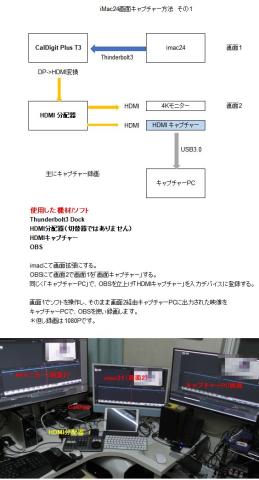 - 同機で分配し、一つは4Kモニターに、他方は「HDMIキャプチャー」に接続。
