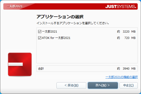ここで一太郎だけを選ぶ人はなかなかいないと思いますが、一応別のソフトウェアであるため、インストールの有無を別々に選択することが出来ます。