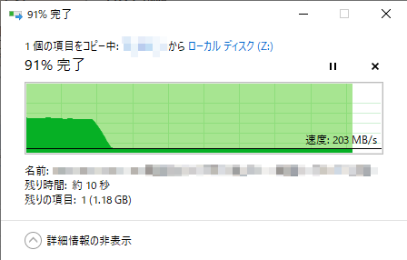 そこで14GBのファイルをCorsair SSD MP600 からこのHDDに移動させてみました。