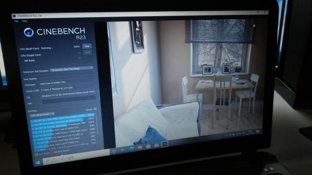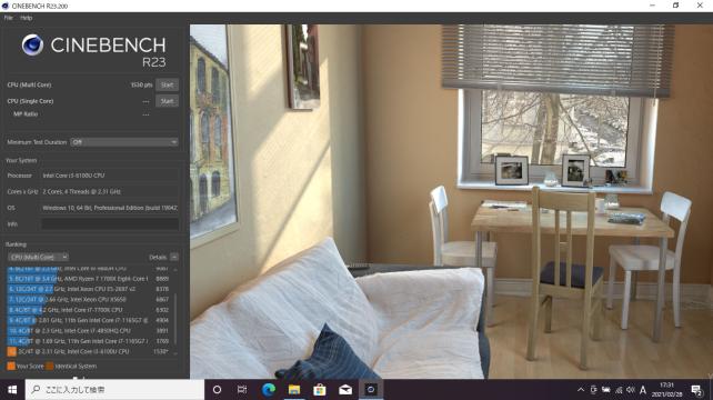 所謂クソ解像度(1366×768)でcinebenchが見切れているが