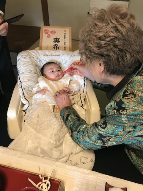 年長者である私の母親(孫から見ると曾祖母)が、最初のお食い初めを行います。