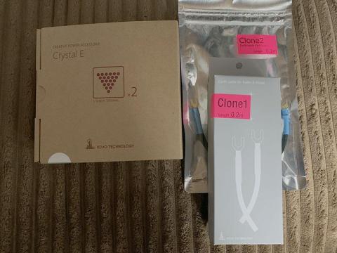 このCrystal Eは密かに大ヒットを記録していて、2月中に出荷されたものの一部は、2000台出荷記念で増設用アースケーブル2種(Clone1、Clone2)の0.2m仕様がバンドルされていました。今回購入したものは、幸いこのバンドル版のものに当たったようです。
