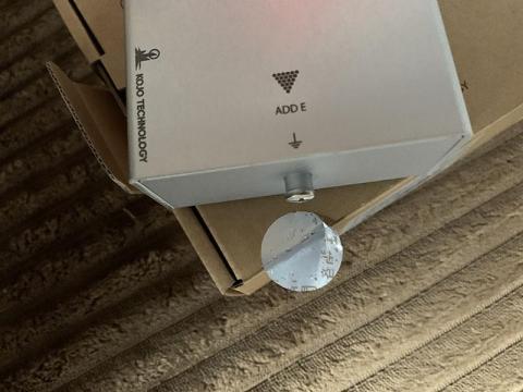 スチールラックの支柱部分を、「ADD E」端子に挟み込んでみた訳です。すると、これが驚くほど効果を発揮しました。アースケーブルを直接スチールラックの支柱に接触させるとむしろノイズは増えていましたから、Crystal Eを使ったことでこの効果が得られたのは間違いないでしょう。