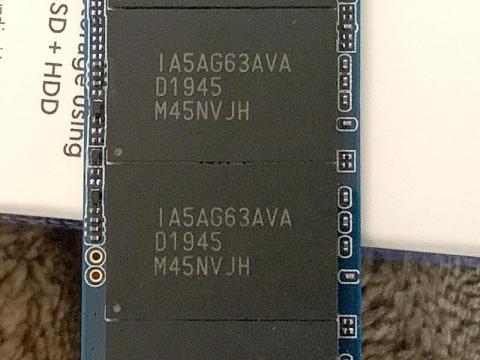 NAND FlashはMicron製のIA5AG63AVAが4つ搭載されています。これは1チップ128GBの3D TLC NANDです。
