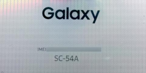 Galaxyロゴの下に小さくIMEIと型番も書いてあります。