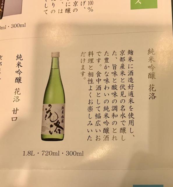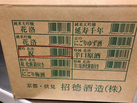 まだお若い取締役室長が選んでくれたのが、純米吟醸酒 「花洛 祝」 15度 300ミリ瓶