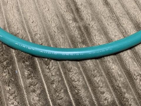 皮膜には「PURIST AUDIO DESIGN AC-IOTA <PS>E JET INTERWIRED」とだけ印刷されています。