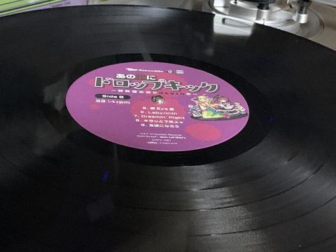 カラーヴァイナルなどではなく、ごく普通のLP盤です。ただ、中央のラベルはCD盤のデザインとは異なっているようです。こちらはジャケットのイラストと共通のように見えます。