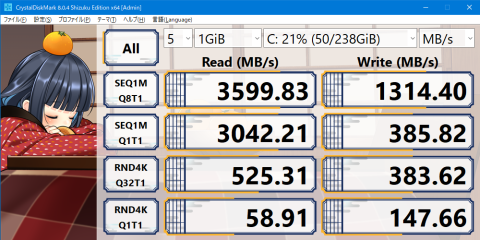 CrystalDiskMark 8.0.4 Shizuku Edition x64 (C) 2007-2021 hiyohiyo