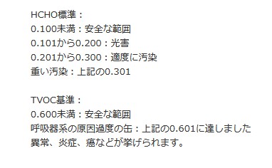 シックハウス症候群とも関係しますがHCHO , TVOC で検索すると色々出てきます