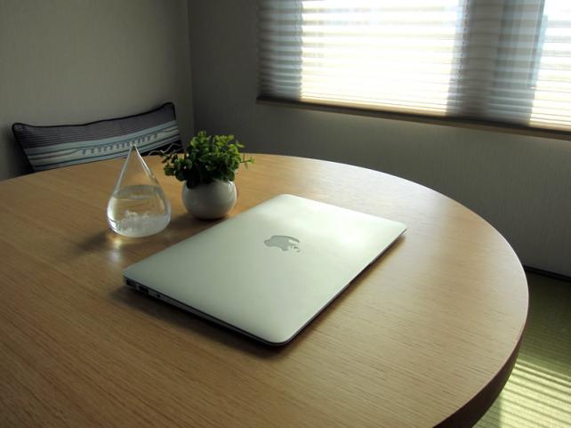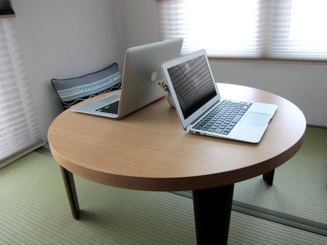 うん、直径 80cm のちゃぶ台(座卓)には、11インチのノートPCが良く似合うことが立証されました。シルバーが明るい色のテーブルによく合いますね。