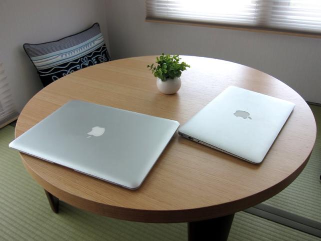 丁度良いノートPCが無かったので、MacBook Air の 13インチと11インチの2台を置いてみました。