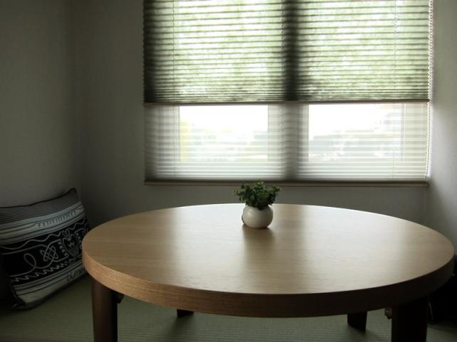 90cm、100cm と迷ったのですが、ウチは 3 畳という狭いスペースなので、できるだけ小さいものに。形も丸型にしました。