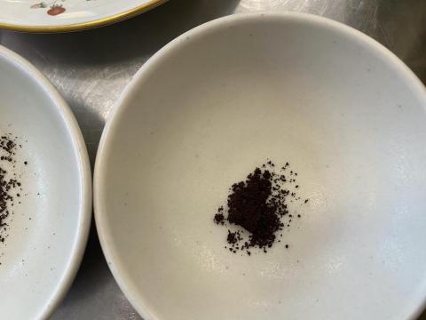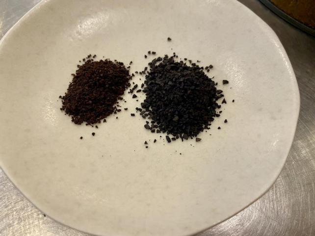 写真左は、一番細かいメッシュで挽いたコロンビア ホットコーヒー用です。